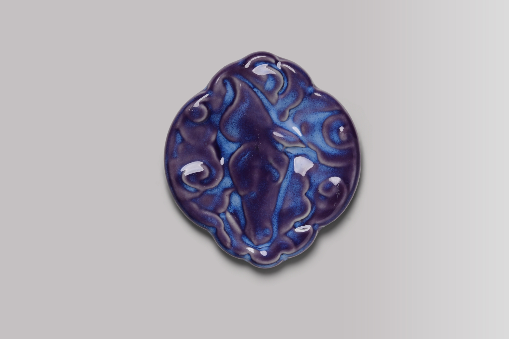 Cloud motifs follow the saddle-like outline of the form and are crafted using layered relief techniques, combining raised and recessed surfaces with BTMA’s signature glaze effects to create soft, flowing lines and visual depth.