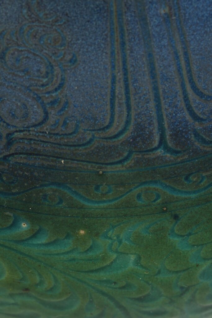 Sự tương tác không định trước của lửa trên lớp men chồng, kết hợp cùng các kỹ thuật đắp nổi, khắc chìm, đã góp phần tạo nên bề mặt gốm như một bức tranh giàu sắc độ và chiều sâu, khó trộn lẫn với bất kỳ phong cách phủ men nào khác.