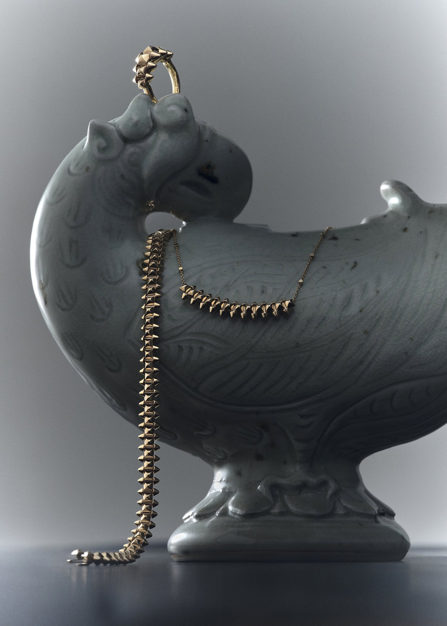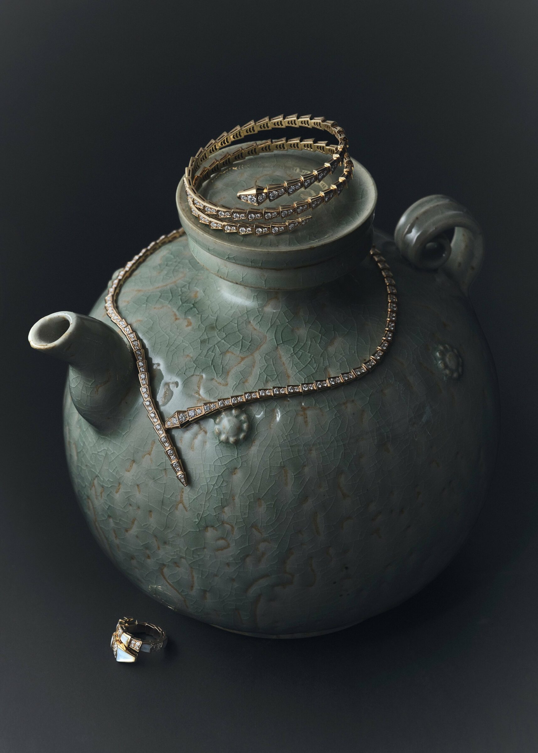 Các thiết kế trang sức cao cấp đến từ những thương hiệu danh tiếng được thả hồn trên các tác phẩm của Cố Nghệ nhân nhân dân Vũ Thắng hiện trưng bày tại Bảo tàng Nghệ thuật Hồn Đất Việt Bát Tràng (Bát Tràng Museum) cùng những sản phẩm đặc trưng của BTMA – xưởng gốm của bảo tàng do cố nghệ nhân sáng lập. Đó là sự kết hợp vừa tĩnh vừa sâu, gợi mở thêm biết bao ý niệm phục sức hào hoa, thanh lịch.